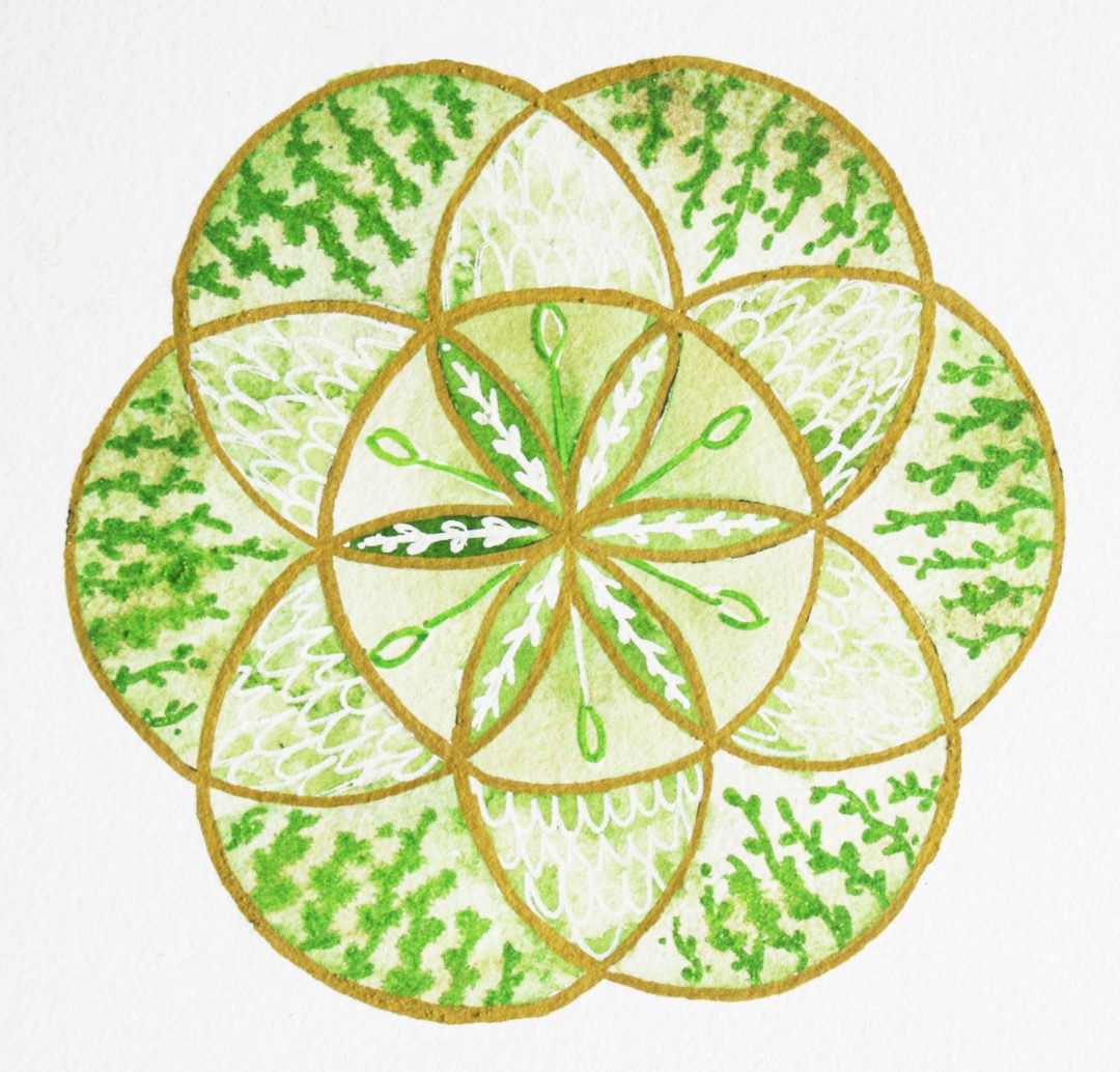 A small selection of Botanical Mandala designs created with pen and watercolor. I also love to create Botanical Motifs and scan them in to create digitally created designs.